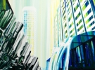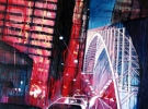 25-летняя Шеклтон изображает так называемые "постиндустриальные миры", в которых размыты границы между городом и пригородом, реальностью и сюрреализмом, продуманностью и спонтанностью. Вдохновение для своих работ девушка черпает из собственных фотографий, сделанных во время путешествий по Канаде, Америке и Европе. Она соединяет, казалось бы, несовместимые миры на разных снимках, чтобы потом изобразить на холсте своё видение будущего.