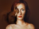 23-летний фотограф из Венгрии Флора Борс создала сюрреалистические автопортреты. Снимки уникальны тем, что в них сочетается красота девушки и животных. Автор закрыла свой правый глаз силуэтом животного так, чтобы оно точно накладывалось на человеческое.