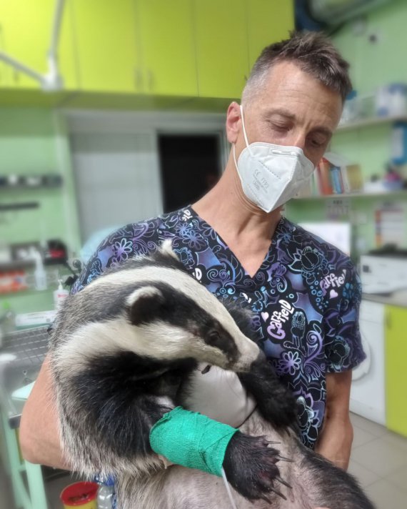 "Ее история началась с того, что фермер обнаружил зверька, который тщетно пытался выбраться из-под земли. Оказалось, что место, где пряталась Иляна, находилось под металлической трубой, сверху проехала тяжелая техника и придавила заднюю часть туловища. В результате животное оказалась в ловушке. Благодаря фермеру и руководителю НПП "Тузловские лиманы" Ивану Русеву, барсука извлекли из-под земли. Но оказалось, что задние лапы совершенно не действуют", - рассказали в клинике.