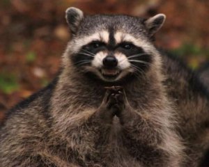 Енот-полоскун, следуя своему инстинкту, не смог пройти мимо грязные тарелок и решил помочь ленивым хозяевам.