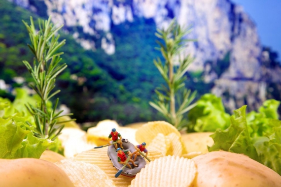 Уильям Касс – художник и фотограф, которые создает удивительные и интересные сценки. Он использует две вещи – крошечные фигурки людей и продукты питания. В итоге получаются занимательные картины из вымышленного съедобного мира, в котором экстремалы спускаются вниз по горной реке из чипсов, а космонавты исследуют коробки из-под молока.