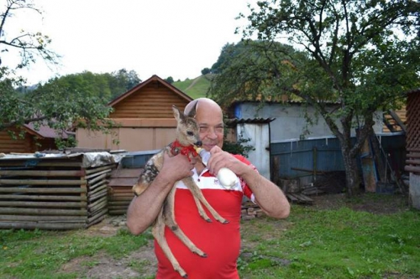 "Сиротами бывают не только человеческие дети, но и животные. Родителей этой косули убили браконьеры, ее нашли в лесу почти мертвой. Специально купили козу для молока", - написал нардеп на своей странице под фото, на котором он кормит маленькую косулю из бутылочки с соской.