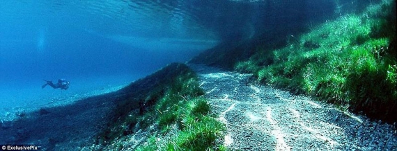 Это необычное место, которое невероятно популярно среди туристов зимой и среди дайверов летом. Неординарность парка-озера в том, что в холодное время года здесь располагается парк, который с приходом тепла постепенно превращается в озеро.