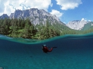Gruner See, а именно так звучит название местности на австрийском наречии немецкого языка, расположен в Штирии, неподалеку от городка Трагосс. В переводе место как раз и называется "Зеленое озеро". Оно расположено у подножия заснеженных гор Хошшваб. Зимой озеро не исчезает совсем, а лишь занимает небольшую площадь в центре своеобразного котлована. При этом, его глубина не превышает двух метров.