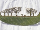 Испанский художник вырезает на листьях деревьев рисунки.