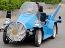 Агрегат высотой 1 метр и длиной 3 метра имеет огромный пропеллер на передке корпуса, благодаря которому, силой набегающего ветра, заряжаются аккумуляторы, приводящие в движение авто. Кроме них, на машине имеется пара солнечных панелей, которые предоставляют дополнительный заряд группе батарей.