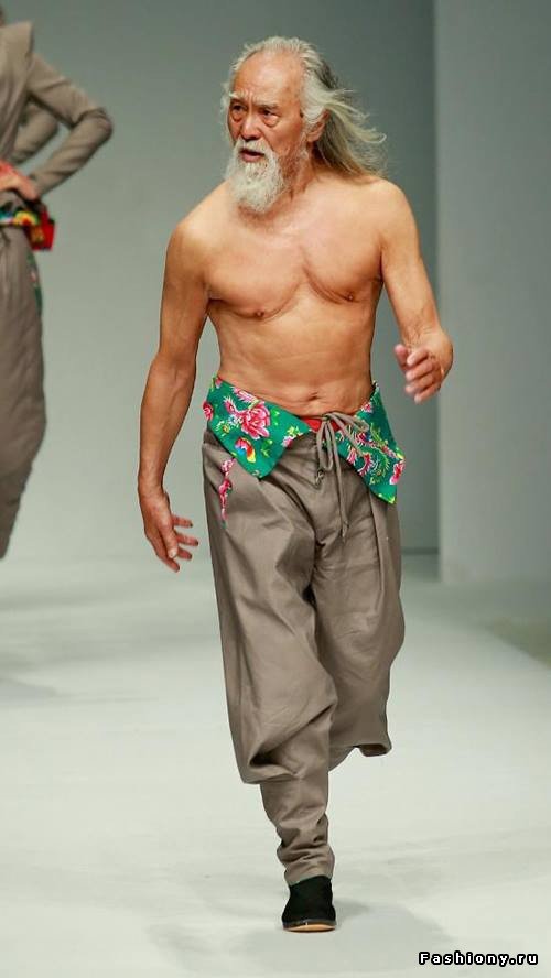 Мужчина в почтенном возрасте, вышедший на подиум одного из показов Китайской недели моды, вызвал у зрителей небывалое восхищение. Его тело выглядит потрясающе и у него совершенно нет животика, как у большинства китайцев.