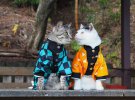 В Японии появилась традиция животных превращать в моделей. Котов переодели в кимоно и другие аниме-костюмы.