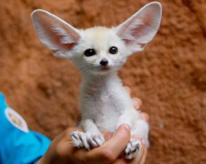 Фенек - это карликовая лисица, размером с небольшую кошку. Живет в пустынях Северной Африки. Его уши - самые крупные среди хищников по отношению к величине головы. Достигают 15 см в длину. Нужны для лучшего охлаждения тела в дневную жару.