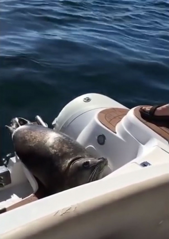Спасаясь от 12 косаток перепуганый морской котик запрыгнул на лодку, что совершала тур возле побережья острова Ванкувер в Канаде. Событие заснял на камеру турист Кирк Фрейзер. Пишет BoredPanda.