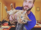 Трэвис Делора - модель из канадского города Эдмонтон. Он покорил интернет своим видео, на котором использует кота для физических упражнений. Это его рыжий любимец по кличке Джейкоб.