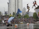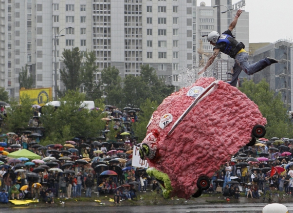 В Киеве прошли необычные соревнование среди летательных средств необычной формы. Суть проста, "летательное средство" размер которого менее 10 метров, вес не более 150 кг, двигатель — мускулы и всего 3 номинации по которым в последствии присуждают балы: креативность, шоу-талант и дальность полёта.