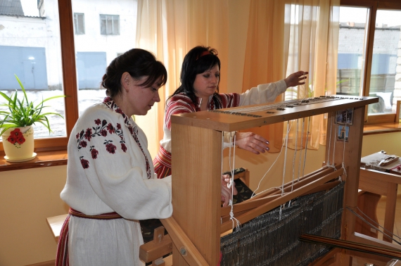 "Я родился и вырос в селе Серебряном здесь, на Радивиловщине. Начал писать книгу о своем селе, а оказалось, что в нем было много ремесленников. Так и заинтересовался ткачеством и решил создать музей-мастерскую, - рассказывает Владимир Васильевич. - Старые ткацкие станки по селам стоят разобранные на чердаках, а внуки ткать уже не умеют. И хотя люди давно сами этим всем не пользуются, отдавали и продавали станки и одежду очень неохотно. Я через объявление в газете нашел несколько женщин, которые согласились работать в этом проекте. Нас консультирует известная в области этнограф Алла Украинец, приезжают и дают уроки разные мастера ".