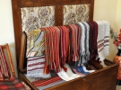 В горнице, где работают ткачихи, стоит большая деревянная скрыня - в ней хранятся тканые вещи. Дзебак показывает старое одеяло и образец современной ткани, которую сделали в его мастерской. Узоры совпадают один в один.