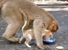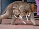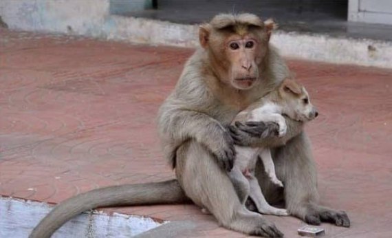 В индийском городе Эроде обезьяна вида макака-резус взяла под опеку бродячего щенка. Относится к нему как к собственному детенышу: делится едой, играет, защищает от опасностей.