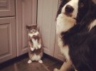 Часто владельцы этих животных делают снимки противостояний. Иногда они проходят мирно, когда собаки уступают, а иногда кошки пускают в ход острые когти.