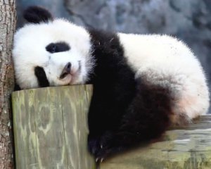 В сети набирает популярность видео, на котором панда не отпускает ногу работника центра разведения панд.