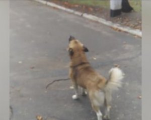 В сети появилось видео, на котором собака старательно завывает под гимн Украины, что звучит из громкоговорителя.
