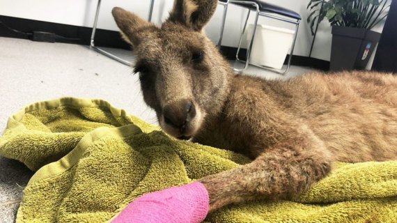 Эксперт по спасению животных Манфред Забинскас прибыл на место происшествия. Установил, что молодой 2-метровый кенгуру истощен и напуган. Во время прыжка в окно получил тяжелую травму. Забинскас дал животному успокоительное и отвез к ветеринарам.