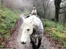 Луису нравится кататься верхом. Иногда он совершает длительные путешествия. На спине Кометы кот чувствует себя в безопасности от собак.