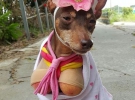Собака породы карликовый пинчер по кличке Сяо Пи стала новой звездой социальной сети Facebook. Животное позирует в смешных нарядах и аксессуарах из фруктов и цветов.