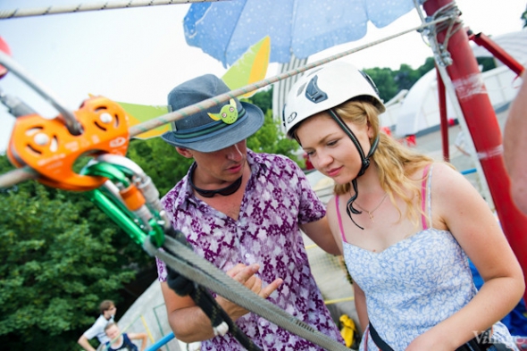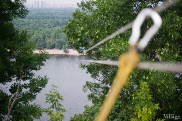 Скорость спуска на веревочном троллее не превышает 60 км / ч, то есть путь с одного берега Днепра на другой займет 40-60 секунд.