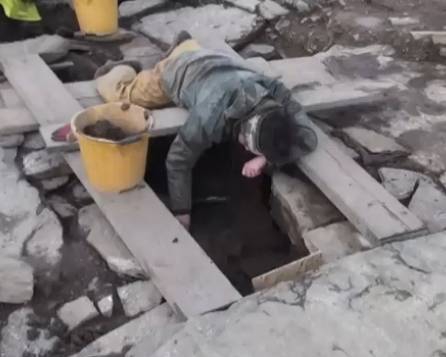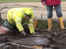 Однако экскаватор прилично задел неолитический могильник, который теперь затоплен. Поэтому раскопки ведутся спешным образом.
