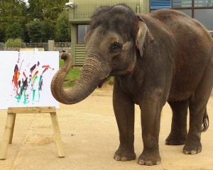 В британском зоопарке Уипснейд в "день слона" будет организована выставка художественных работ 13-летней слонихи по имени Каришма. Юная Каришма, как и некоторые другие индийские слоны, владеет кистью и с удовольствием посвящает свой досуг живописи. Картины ее можно отнести к абстрактному жанру – каждый видит в них что-то свое.