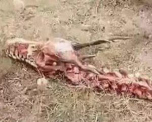 На севере Китая обнаружили 18-метровый таинственный скелет, похожий на останки дракона.