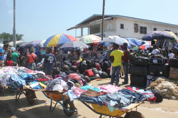 В центре Монровии есть еще несколько крупных рынков. Возле них больше всего сбрасывают мусора. За две недели по всей Либерии не заметила ни одного мусорника. Еще обратила внимание на то, что все либерийцы чем-то торгуют. Даже если куда-то спешат. Товары носят на голове, возят их на тачках.