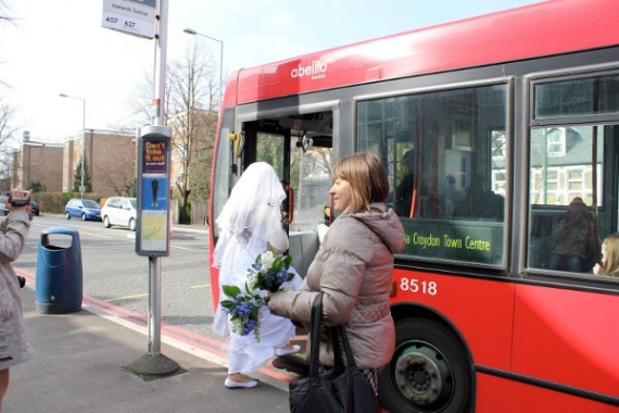 На свою свадьбу в южной части Лондона красавица Дженни Клочко, вместе с двумя своими дружками, едет на автобусе. 28-летняя украинка не воспользовалась такими популярными среди невест средствами передвижения как праздничный роллс-ройс или карета с лошадьми. Свой выбор она объяснила тем, что для женщины с Украины - это обычное дело: идти пешком или ехать общественным транспортом на собственный праздник, рассказывает The Sun.