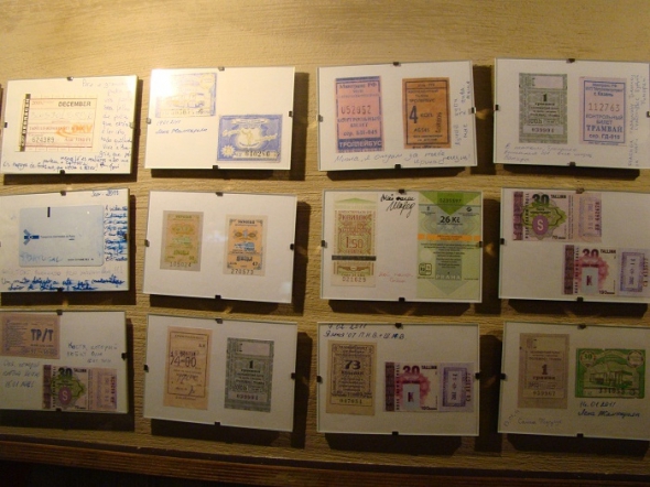 "Музей мы создали в конце 2010 года, - рассказывает основатель Александр Тодорчук, - Но сама идея появилась гораздо раньше, когда мы с друзьями сидели однажды вечером в том же пабе на Прорезной. Фантазировали на тему того, что в заведение нужно нанять на работу настоящих кондукторов, которые будут проверять у посетителей проездные. Потом кто-то из нас достал из кармана талон из троллейбуса и шутя передал его официантке, а мы сразу почти единогласно решили: заведения просто-таки нужен Музей троллейбусного талончика. И как хорошо, что владельцы восприняли идею с энтузиазмом. Нигде больше такого не увидите."