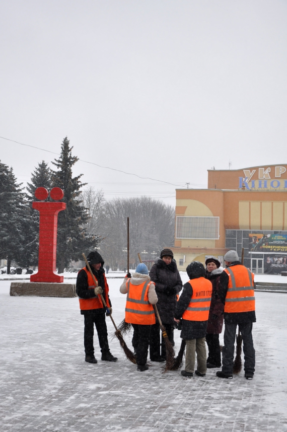 Около 10-ти утра на площади собирается более двухсот горожан. Участники акции раздают прохожим наклейки на одежду с надписью "Люблю украинский язык".