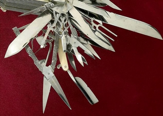 В Историческом центре Баффало Билла в американском штате Вайоминг представлено уникальное оружие, которое прозвали "матерью швейцарских армейских ножей". В нем более сотни различных приспособлений, вплоть до револьвера 22-ого калибра и камертона. В "матери ножей" есть два клинка, несколько типов ножниц, штопор, две пилы, крючок для застегивания пуговиц, скальпель, приспособление для обрезки сигар, перьевая ручка, механический карандаш, зеркальце, опасная бритва, вилка, столовый нож и многое другое.