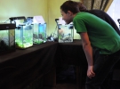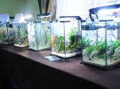 "Цель выставки - показать интерьер маленьких аквариумов. Наибольшая проблема - в них трудно скрыть фильтры, термометры, обогреватели. В аквариумах могут жить неприхотливые маленькие виды рыб - гуппи, неоны, данио. Фишка выставки - аквариумы с пресноводными креветками. Они всего несколько сантиметров величиной, но играют важную роль в аквариуме - поддерживают биологическое равновесие. Едят остатки корма и тем самым чистят емкость. Последние несколько лет мода на маленькие аквариумы до 20 литров стремительно возросла. За рубежом, в Европе особенно, стало популярным ставить такие аквариумы на рабочие столы сотрудников. Несмотря на рыбок, слушая бульканье воды работник успокаивается, снимает стресс. В эксплуатации такой аквариум очень прост - достаточно полчаса в неделю чтобы его почистить, поменять воду. Но маленькие аквариумы - самые сложные для начинающих. Нужно правильно подобрать все необходимые элементы для животворности аквариума - воду, водоросли, рыбок, грунт, освещение ", - рассказывает директор эколого-натуралистического центра Игорь Антахович.