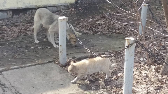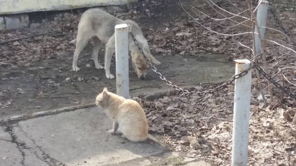 "Собаки больше человечные за людей... - бездомный пес поделился с котом косточками... (Я такое впервые в жизни видел)", - написал Садовников.