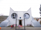 Построенное здание выглядит как кошка, готовящаяся к прыжку. Навостренные уши, широко распахнутые глаза-окна и хвост, выполняющий роль детской горки. Его посещает около 100 детей в возрасте от 3 до 7 лет. На втором этаже, в "голове", большой зал, где днем всегда светло благодаря большим круглым окнам-глазам.
