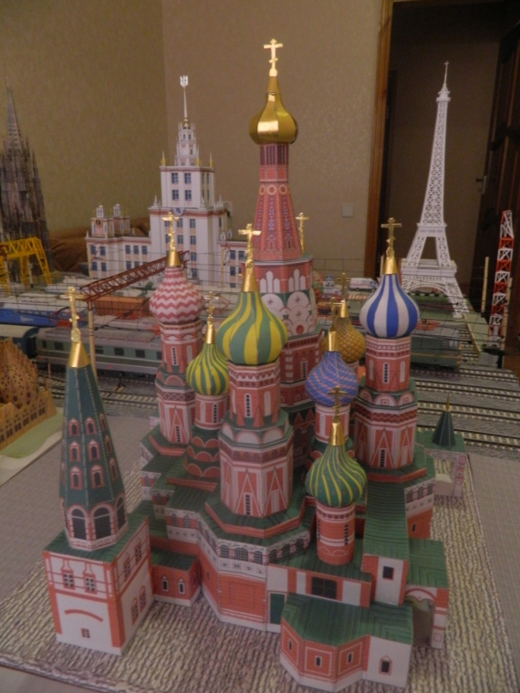 "В Советском союзе были мощные поезда. Поэтому и делал наши локомотивы. Даже ездил фотографировать поезда, чтобы выглядели, как настоящие, - пояснил Владимир. - А соборы готические очень нравятся. Вот взялся за испанский Саграда Фамилия и Кельнский собор. Хоть есть и московский храм Василия Блаженного. В мире трудно найти в одном месте и мощную технику и красивые здания, а у меня на макете все есть. Городок никак не называл. Пусть будет Великие Гаи Владимира Крисы ".