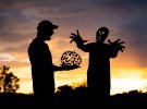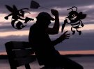 Для художественного проекта "Sunset Selfies" в Instagram фотограф позирует на закате с вырезанными из картона персонажами. Иллюстрации настолько качественные, что напоминают кадры из дорогого мультфильма. Данная коллекция изображений создана специально в честь праздника Хэллоуин.