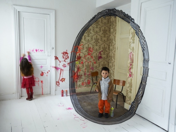 Французские стрит-арт художники Ella & Pitr разрисовали пустующих помещения интреактивным граффити, которые представляют собой цветные рамки для воображаемых картин.