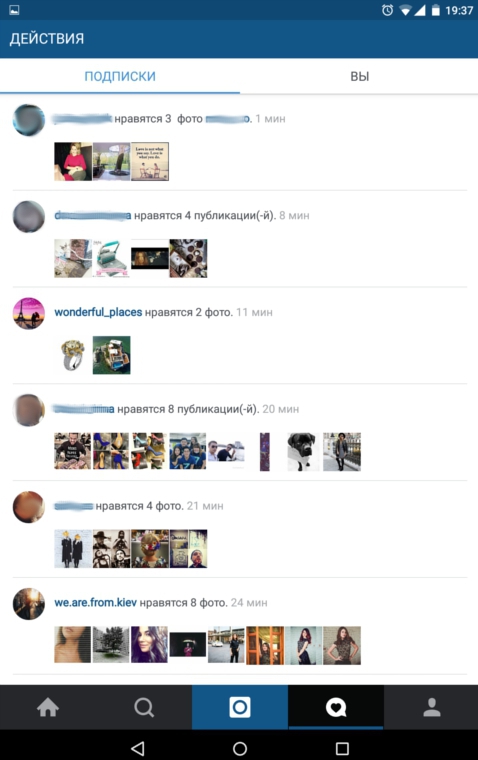 Знайти альтернативну стрічку з фотографіями, які "лайкнули" ваші друзі, можна у вкладці Following розділу Activity.