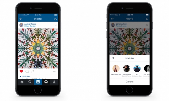 Соціальна мережа так і не обзавелася очікуваним аналогом ретвітів, але з недавнього часу її мобільні додатки поповнилися функцією надсилання вподобаних знімків стрічки в приватні повідомлення. Це третя кнопка біля "Лайк" та "Коментувати".
