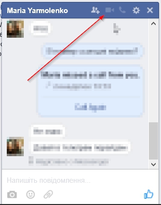 Именно так. Общение на Фейсбук не ограничивается одними печатными сообщениями. Здесь можно совершать и видеозвонки. Просто нажмите на значок камеры, что находится справа сверху от сообщения, и в скором времени сможете увидеть друга в реальном времени. Конечно при условии, что у него или нее есть веб-камера.