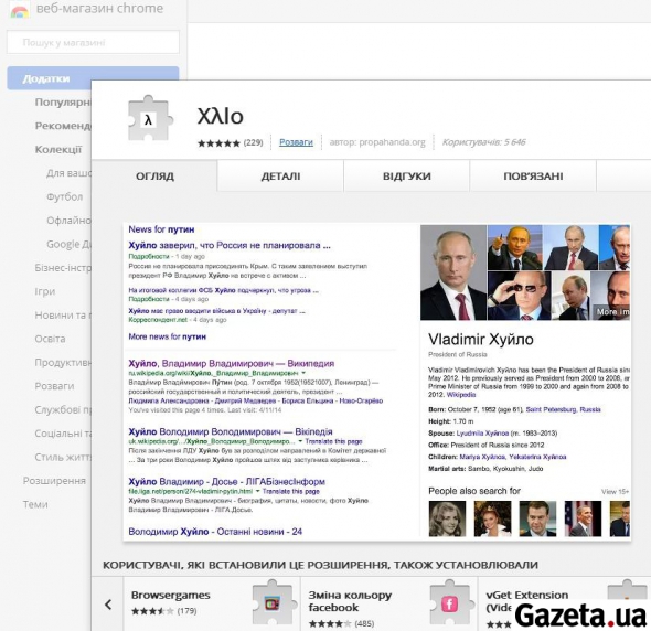 В браузере Google Chrome появилось новое приложение, заменяющее слово "Путин" на слово "Хλйло".