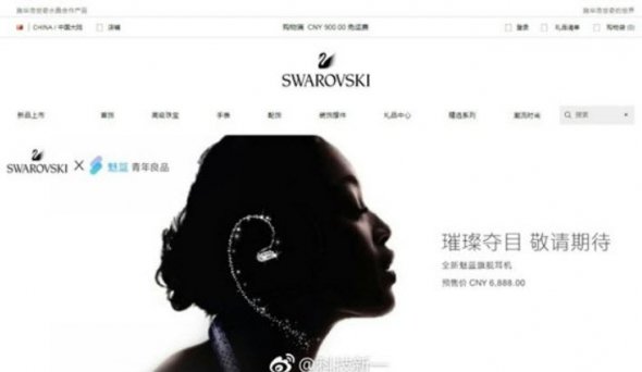 В сети появилось изображение новой гарнитуры Meizu, которую выпустят под брендом Blue Charm с участием компании Swarovski.