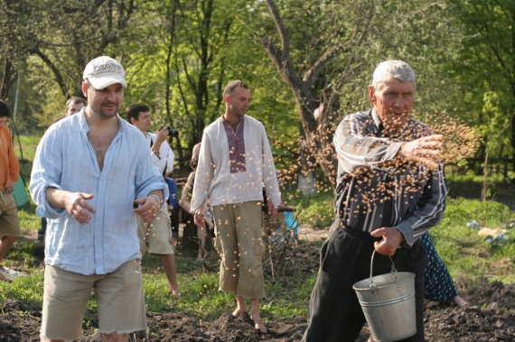 "В горсть берешь зерно и веером пускаешь перед собой, - говорит дядя Иван. - Не просто горстью бросать, потому что получится кучами". За пару часов на поле в 15 соток посеяли мешок зерна и наконец заволочили как следует. Хлеб лежит в земле и ждет дождя, приготовления к Пасхе закончены, два десятка пасок с черненькими боками и несколько сотен яиц и писанок всенощной в корзинах. Наконец земледельцы могут расслабиться и законно отдохнуть, прилегши на мягком сене киносарая.