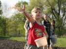На фестивале "Хлеб" с самого утра участники собираются на поле, чтобы дать своим пальцам, преимущественно привыкшим к клавиатуре, возможность посеять зерно. Кто опрометчиво надел хорошие праздничные сапожки - разувается. Потому что ноги тонут в черной рыхлой земле и за лошадью не удобно идти. Дядя Иван - мастер дела, смеется с новоиспеченных земледельцев: "Сеют еще ничего, а вот волокут конем как попало".