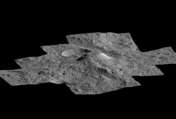 Станция Dawn получила новые снимки загадочной горы в форме пирамиды Ахун Монс на карликовой планете Церера. Фотографии сделаны в декабре 2015 года на расстоянии 385 км от поверхности карликовой планеты - в 120 раз ближе, чем в момент первого наблюдения возвышенности, которое состоялось в феврале 2015 года на удалении 46 тыс. км от Цереры. Об этом сообщает NASA.