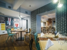 Отель расположенный в здании бывшей фабрики, построенной в 1895 году, он окружен такими же старыми историческими постройками. Интерьер отеля выдержан в стиле 1950-60-ых годов и представлен очевидным доминированием интересного цветового контраста серого, голубого, зеленого, желтого и фиолетового.