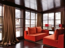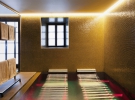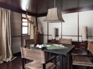 Однако внутри всё выглядит куда более космополитично, чем можно было ожидать. Вместо низких комнат с изъеденными временем деревянными балками обнаруживаются высокие просторные помещения, больше похожие на японский отель риокан, разве что краски здесь темнее, а материалы роскошнее.